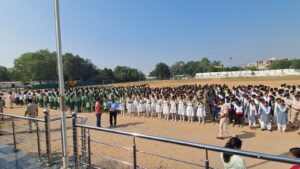 कार्यक्रम में सैकड़ों स्कूली बच्चों ने भाग लेकर राष्ट्रगीत का भावपूर्ण गायन किया जिससे पूरे स्थान पर देशभक्ति की लहर फैल गई।