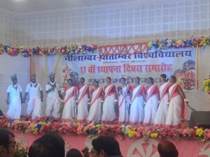 मेदिनीनगर : नीलांबर पीतांबर विश्वविद्यालय (एनपीयू) का 17वां स्थापना दिवस विश्वविद्यालय के ऑडिटोरियम हॉल में भव्य, गरिमामय एवं उत्साहपूर्ण वातावरण में मनाया गया। कार्यक्रम का संयुक्त मंच संचालन डॉ. भावना सिंह एवं डॉ. संजय बाड़ा ने किया। कार्यक्रम के मुख्य अतिथि भौतिकी विभाग के सेवानिवृत्त शिक्षक डॉ. के.के. मिश्रा रहे।