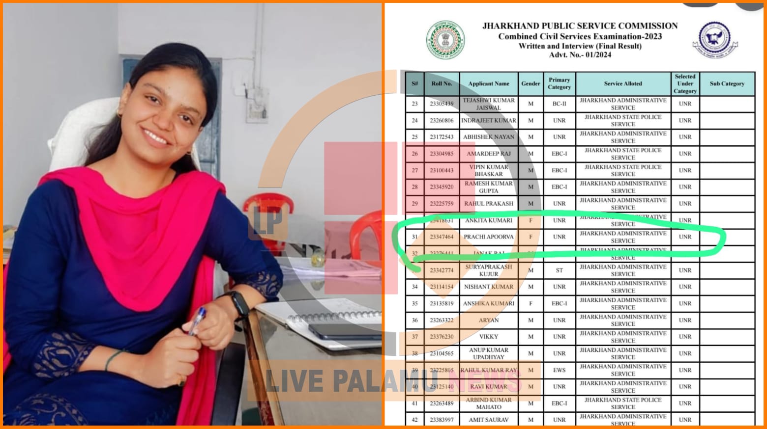 प्राची अपूर्वा की सफलता ने बढ़ाया पलामू का मान, JPSC परीक्षा में पाया 31वां रैंक