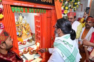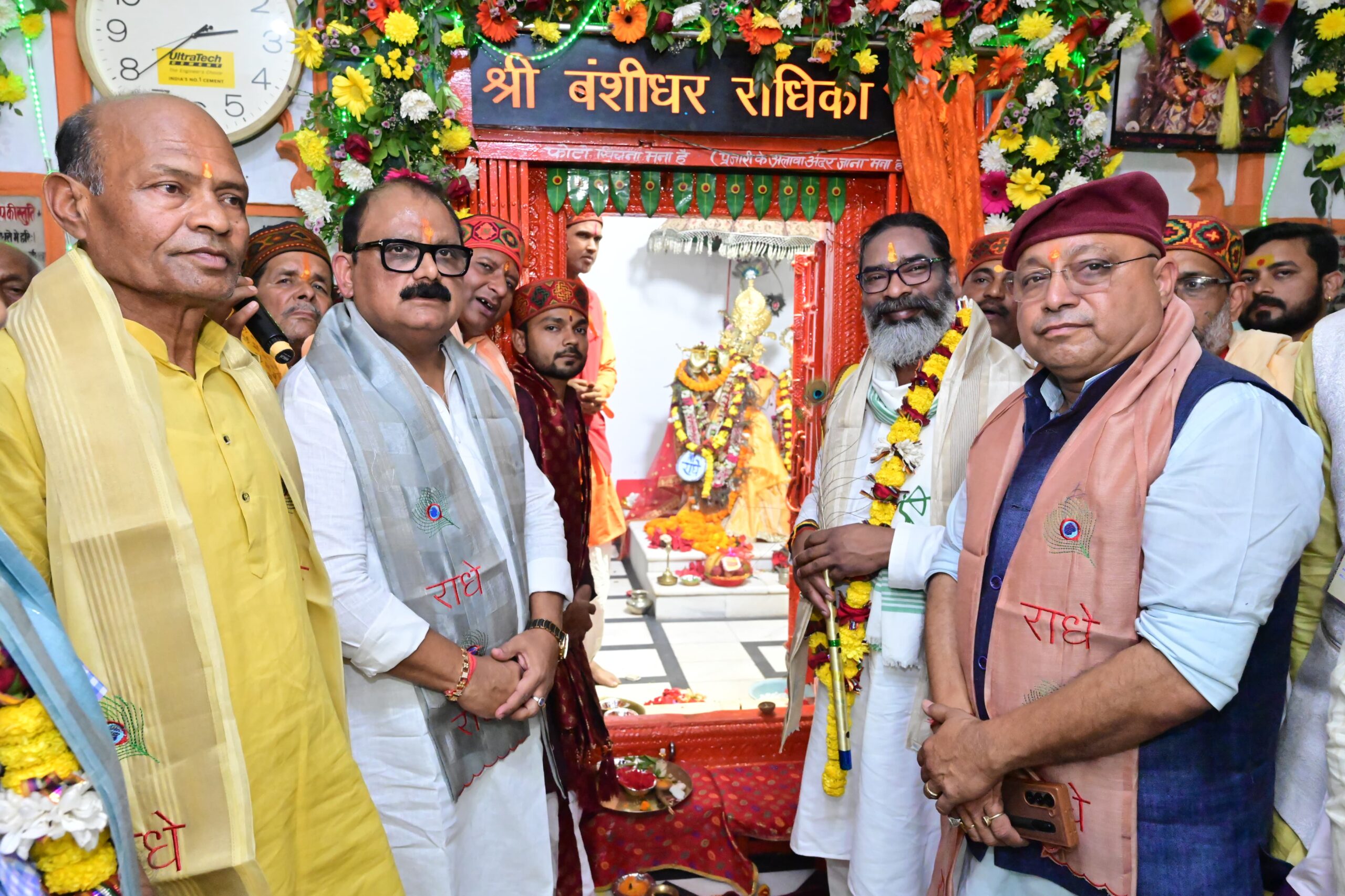 मुख्यमंत्री ने श्रीराधावंशीधरजी युगल सरकार की विधिवत चरण दर्शन पूजन किया। मंदिर में दो दिवसीय विशेष पूजन और अनुष्ठान के लिये काशी व देश के विभिन्न स्थानों से पधारे विद्वान आचार्यों की टीम ने वैदिक मंत्रोच्चार के बीच पंचोपचार विधि से पूजन संपन्न कराया।