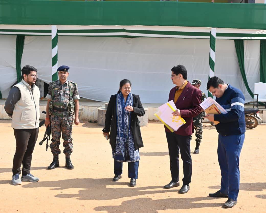 इसी क्रम में कार्यक्रम के सुचारू एवं सफल आयोजन को सुनिश्चित करने हेतु आज उपायुक्त श्रीमती कीर्तिश्री जी ने मुख्य कार्यक्रम स्थल का निरीक्षण किया। निरीक्षण के दौरान उन्होंने सुरक्षा, मंच संचालन, अतिथि व्यवस्था, प्रदर्शनी स्थल, दर्शक दीर्घा तथा अन्य व्यवस्थाओं का जायजा लिया और संबंधित पदाधिकारियों को आवश्यक दिशा-निर्देश दिए।
