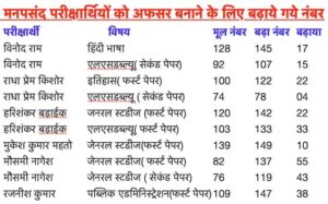 लाइव पलामू न्यूज : सीबीआई जांच में जेपीएससी -2 में बड़े पैमाने पर गड़बड़ी सामने आई है। दरअसल, आयोग के पदाधिकारियों के अलावा दूसरे मनपसंद परीक्षार्थियों के नंबर बढ़ा कर मुख्य परीक्षा में पास कराया गया। इतना ही नहीं इंटरव्यू में ज्यादा नंबर देकर अलग अलग सेवाओं में बेहतर रैंक भी दिया गया। सीबीआइ ने जांच रिपोर्ट में इन तथ्यों का उल्लेख किया है। इसके साथ ही किन परीक्षार्थीयों के किन किन विषयों में नंबर बढ़ाया गया उसका भी उल्लेख किया गया है।