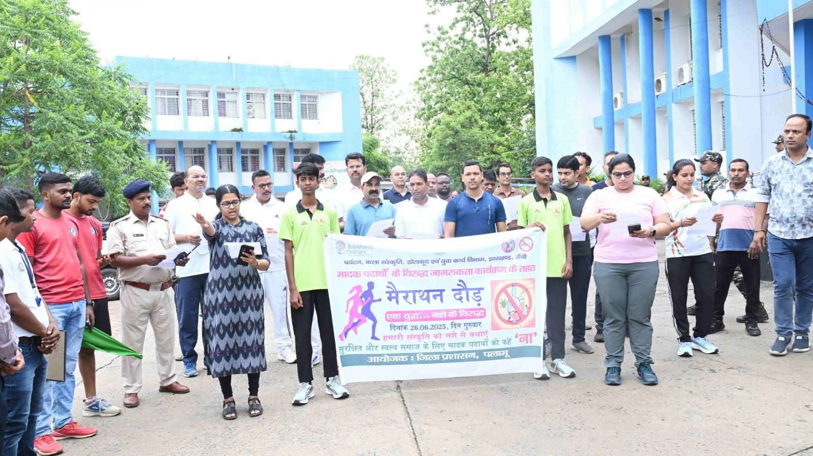 पलामू : मादक पदार्थों के निषेध की थीम पर आज पलामू जिला मुख्यालय मेदिनीनगर समाहरणालय से पुलिस लाइन तक मैराथन दौड़ का आयोजन किया गया। पलामू उपायुक्त समीरा एस एवं पुलिस अधीक्षक रीष्मा रमेशन पलामू समाहरणालय भवन परिसर से हरी झंडी दिखाकर मैराथन दौड़ को रवाना किया। साथ ही दौड़ में भाग लिया।