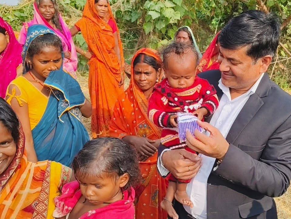 “आइये खुशियां बांटें” : नवाडीह के मुसहर परिवारों के सभी सदस्यों को दिए गए गर्म कपड़े