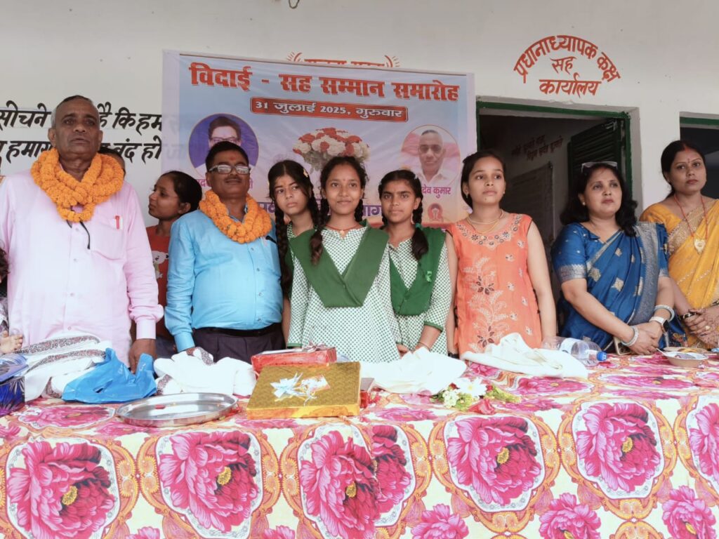 इस मौके पर दोनों शिक्षकों के योगदान और सेवाओं को याद किया गया। विदाई समारोह में सेवा निवृत्त शिक्षक उदयभानु तिवारी और ब्रह्मदेव कुमार ने अपने अनुभव साझा किए और छात्रों के उज्ज्वल भविष्य की शुभकामनाएं दीं। इस अवसर पर स्कूल की प्रधानाध्यापिका रीना प्रेम दुबे, सरोज कुमार आजाद, सुनीता रवि, फूल कुमारी, सुशील कुमार समेत शिक्षक, छात्र-छात्राएं और अभिभावक उपस्थित रहे।