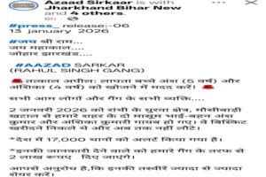इनकी जानकारी देने वाले को गैंग की ओर से दो लाख रूपए दिए जाएंगे। गिरोह ने लोगों को अनुरोध किया गया कि अंश और अंशिका की तस्वीर ज्यादा से ज्यादा शेयर करें. अपने क्षेत्र में नजर रखें और कोई सुराग मिले तो तुरंत प्रशासन को इसकी जानकारी दें। गिरोह ने जानकारी देने वाले को सोशल मीडिया के जरिये गैंग से संपर्क करने की भी बात कही।