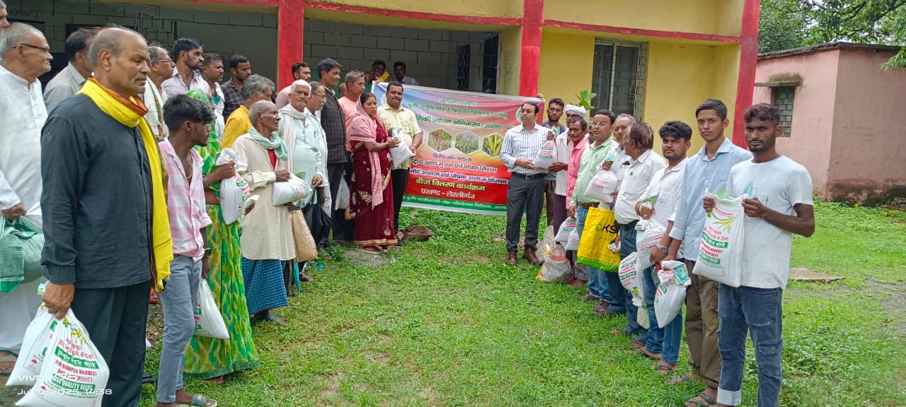 पलामू (नीलाम्बर-पीताम्बरपुर): नीलाम्बर पीताम्बरपुर प्रखंड स्थित कृषि तकनीकी सूचना केंद्र परिसर में गुरुवार को प्रधानमंत्री आदर्श ग्राम योजना के अंतर्गत चौरा गांव के 50 किसानों के बीच 100 प्रतिशत अनुदान पर उरद बीज का वितरण किया गया। यह कार्यक्रम राष्ट्रीय खाद्य सुरक्षा एवं पोषण मिशन (NFSM) के तहत आयोजित हुआ।